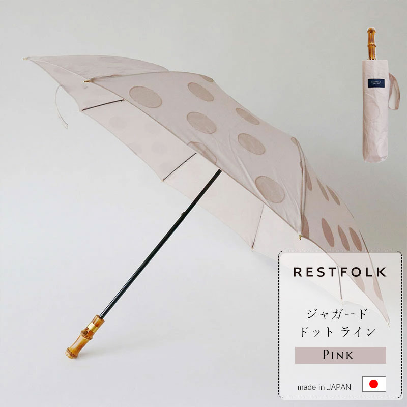 [161302PK] 晴雨兼用 折り畳み傘 ジャガード ドットライン 水玉 PK ピンク 日傘 持ち手 バンブー 竹 UV加工 紫...
