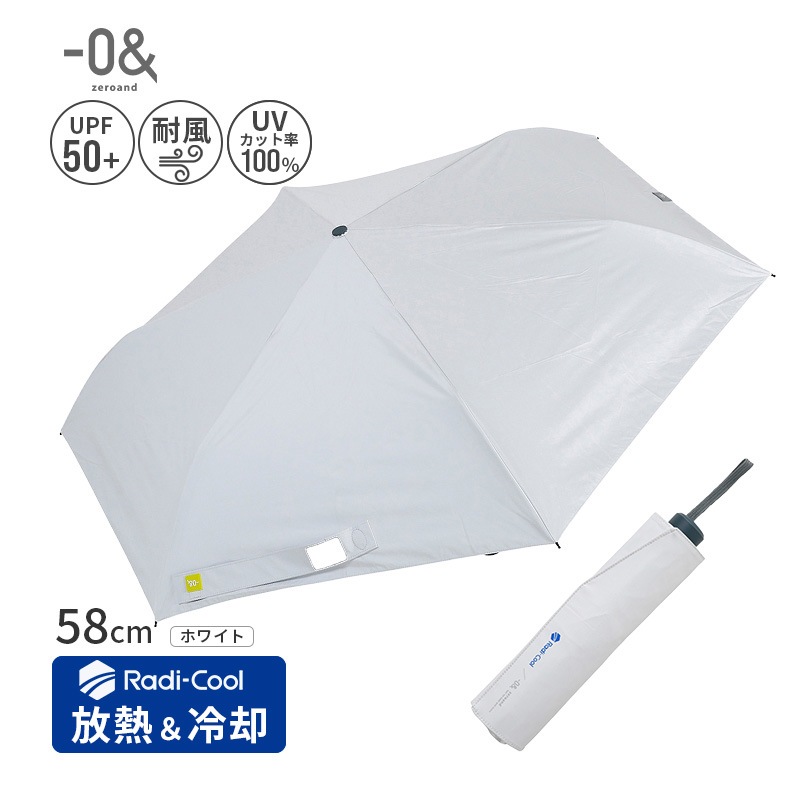 [52384] 3段 折りたたみ傘 遮熱 熱を放出 -0& ラディクール ワイド 58cm 耐風 ホワイト 白 晴雨兼用 Radi...
