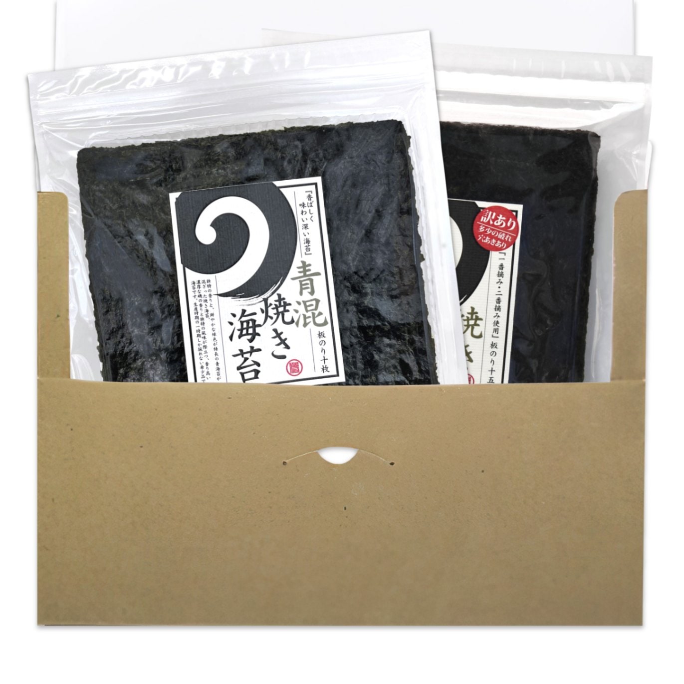 【お試し価格】焼海苔食べ比べセット 青混焼きのり10枚×上はねだし焼き海苔15枚