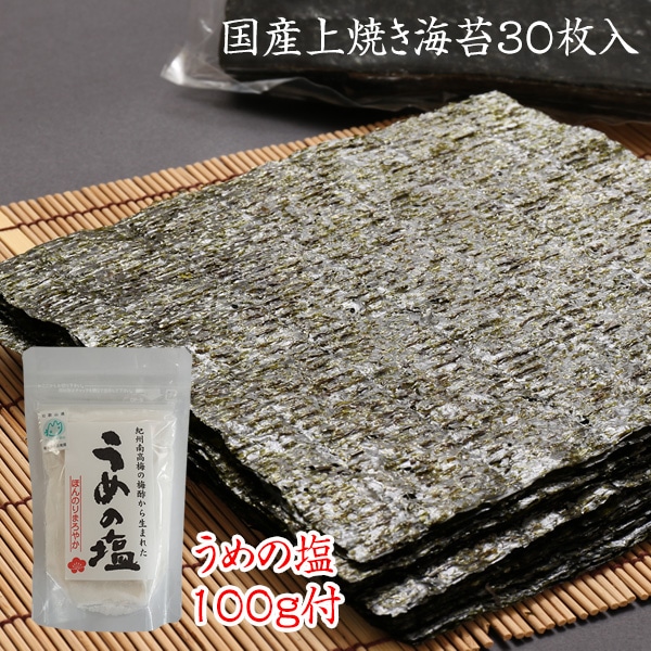 焼き海苔 国産上焼きのり30枚入り(うめの塩100g付)ネコポス便【全国送料無料】