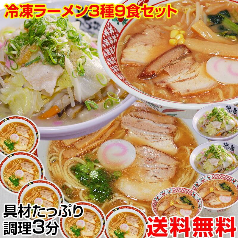 冷凍ラーメン 3種9食セット 麺 スープ 具材付!調理時間たった3分! 濃厚和歌山ラーメン 野菜たっぷり ちゃんぽん みそ豚骨ラー...