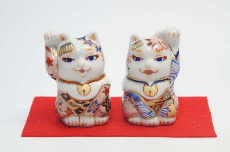 木彫りの合掌猫 袈裟を着た猫仏さま 鴇色