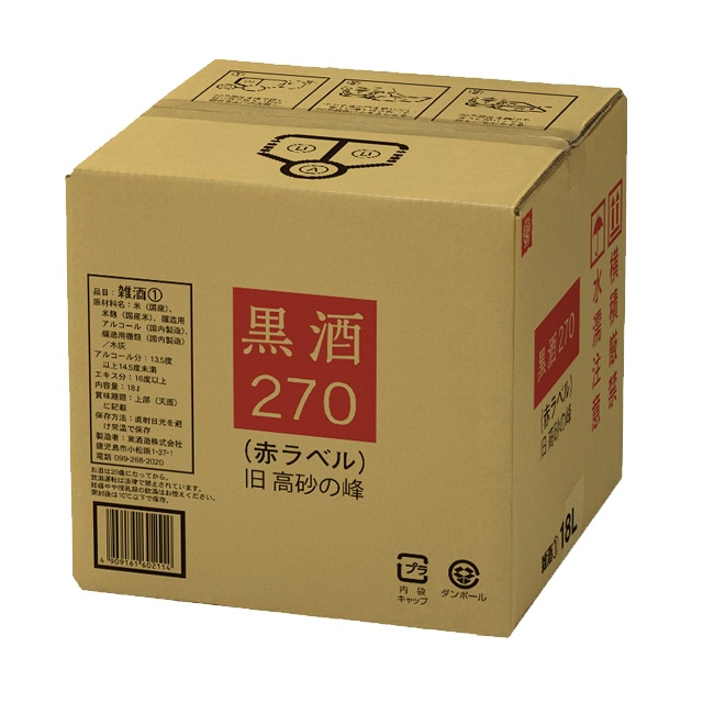 【送料無料】黒酒 270 赤ラベル 13.5度以上14.5度未満 18L 東酒造 鹿児島