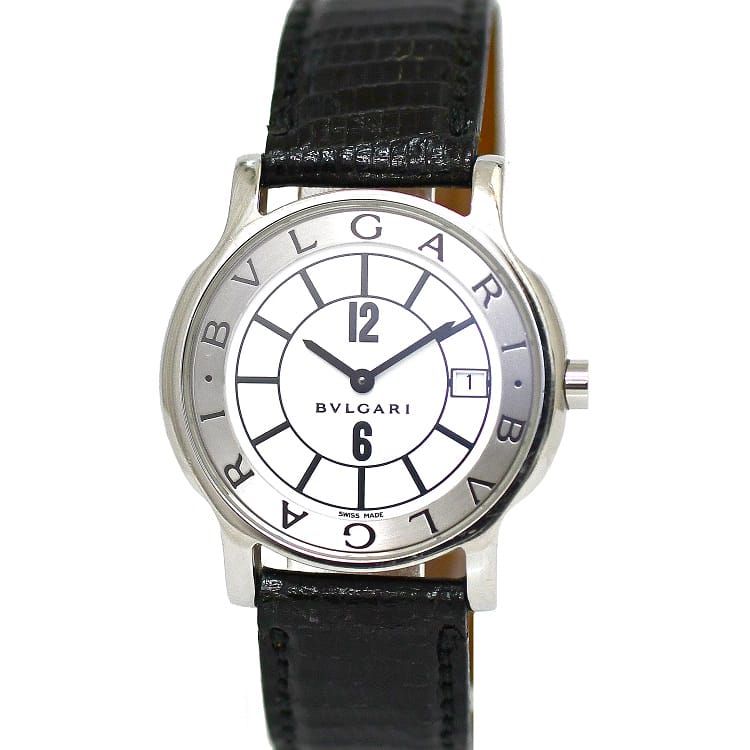 ブルガリ 腕時計 ソロテンポ ホワイト シルバー ブラック ST35S 時計 SS 合皮 中古 BVLGARI 白 35mm 丸文...