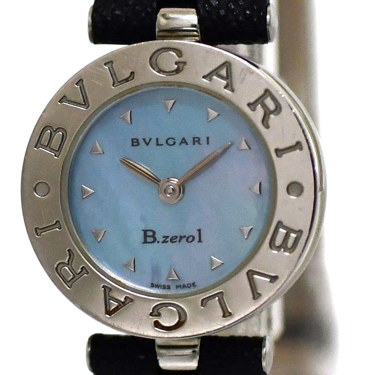 ブルガリ 腕時計 ビーゼロワン f-24061 ブルーシェル シルバー ブラック B-zero1 BZ 22 S 美品 SS レザ...