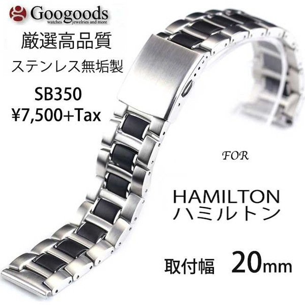 グーグッズ厳選高品質ステンレス無垢ベルトSB350取付幅20mm For HAMILTONハミルトン
