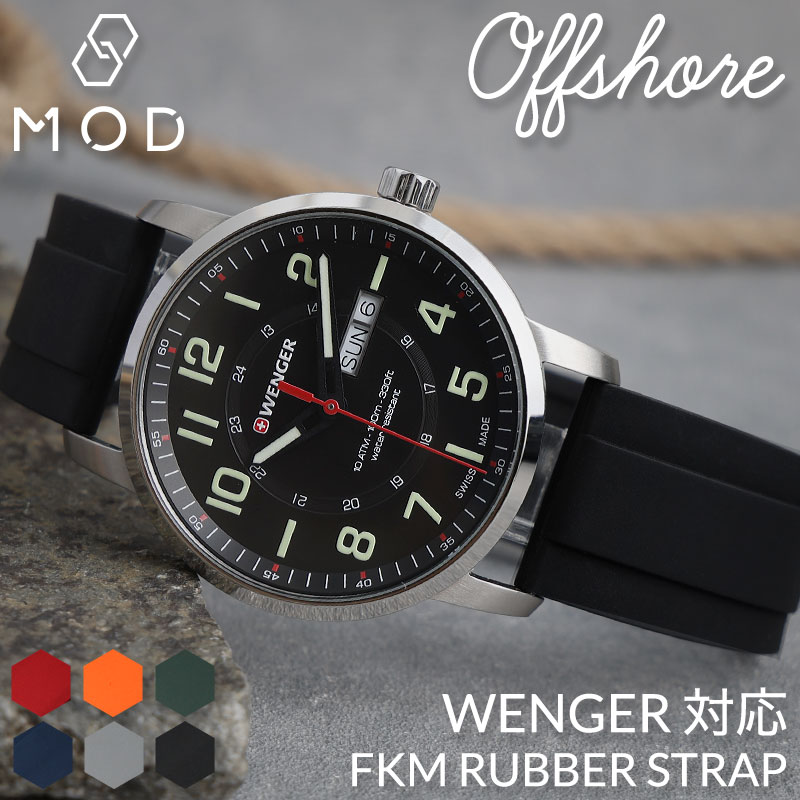 【ウェンガー WENGER 対応】MOD FKM RUBBER オフショア ラバー ストラップ 時計 ラバーベルト カン幅 ラグ幅...