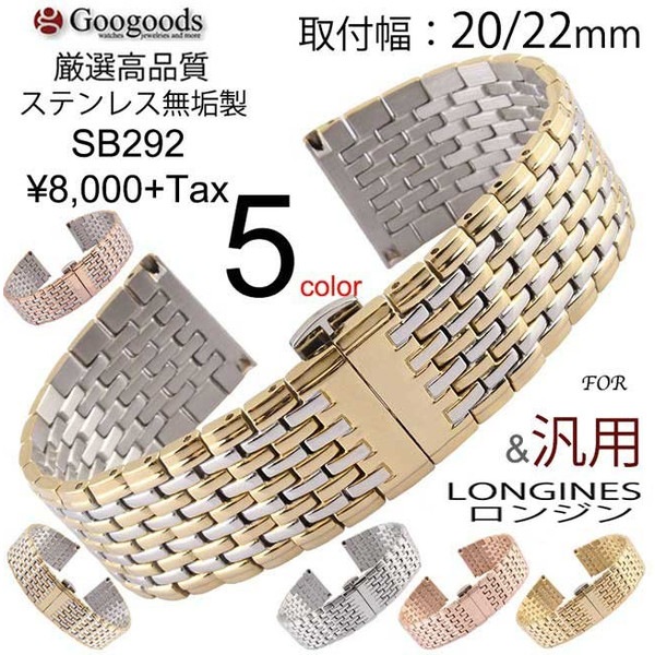 グーグッズ厳選高品質ステンレスベルトSB292取付幅20mm 22mm For LONGINESロンジン&汎用