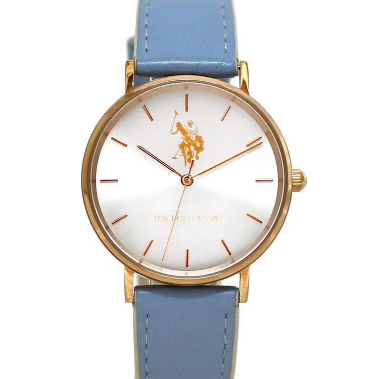 ユーエス ポロ 腕時計 f-21643 シルバー ゴールド ライトブルー 時計 ユニセックス SS レザー 中古 クオーツ US ...