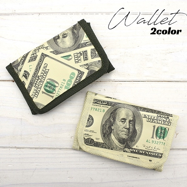 $100札柄 3つ折り財布 全2色 小銭入れ付き シンプル アメリカ輸入品 アメリカン ウォレット 100ドル $100紙幣 アメ...