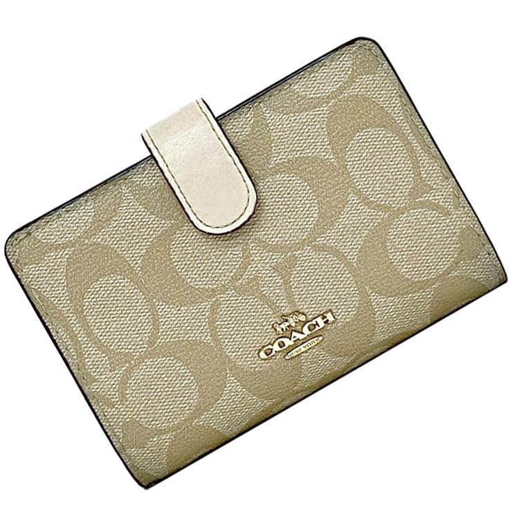 コーチ 二つ折り 財布 ec-22130 ベージュ ホワイト シグネチャー F23553 美品 PVC レザー 中古 COACH ...