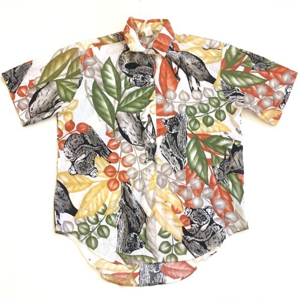 miss B 半袖ブラウス コットンシャツ アメリカ直輸入 柄シャツ レディース S/白地x多色 コアラ カンガルー ワラビー 動...