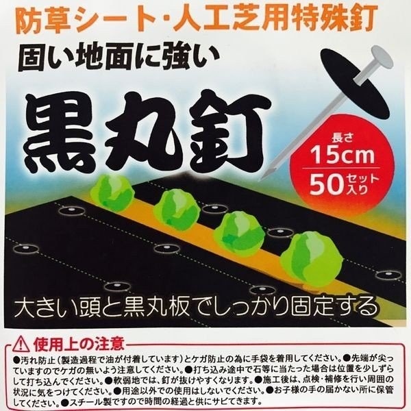 防草シート 人工芝 押さえ用 黒丸釘セット 黒丸板50枚と15cm釘50本セット 特殊釘 雑草対策 送料無料