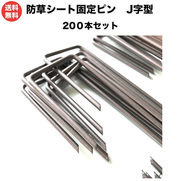 防草シート用 固定ピン J字型(200本セット) アンカーピン 20平米用 国産 全国送料無料 ザバーンなどの防草シート用の押さえ...
