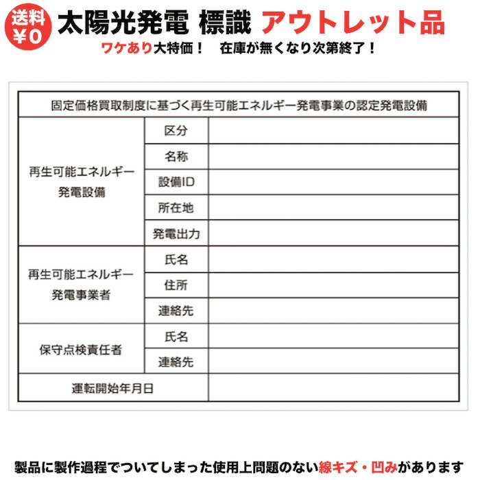 【アウトレット品】軽いキズ凹み 太陽光発電用 標識 看板 改正FIT法・FIP制度対応 当日発送可能 送料無料 今だけ結束バンド8...