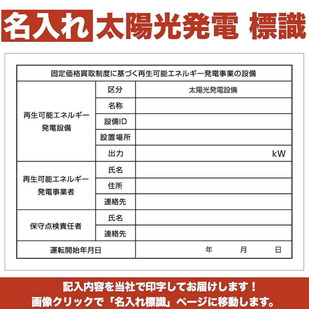 名入れあり 太陽光発電用 標識 看板 改正FIT法・FIP制度対応 送料無料 文字入れ対応 今だけ結束バンド6本サービス中!! 水...