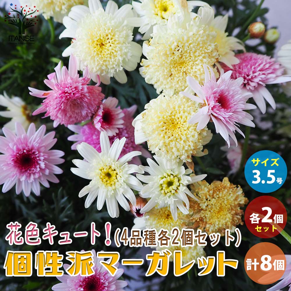 花色キュート! 個性派マーガレット4品種各2個セット【花苗 3.5号ポット/お買い得8個セット】
