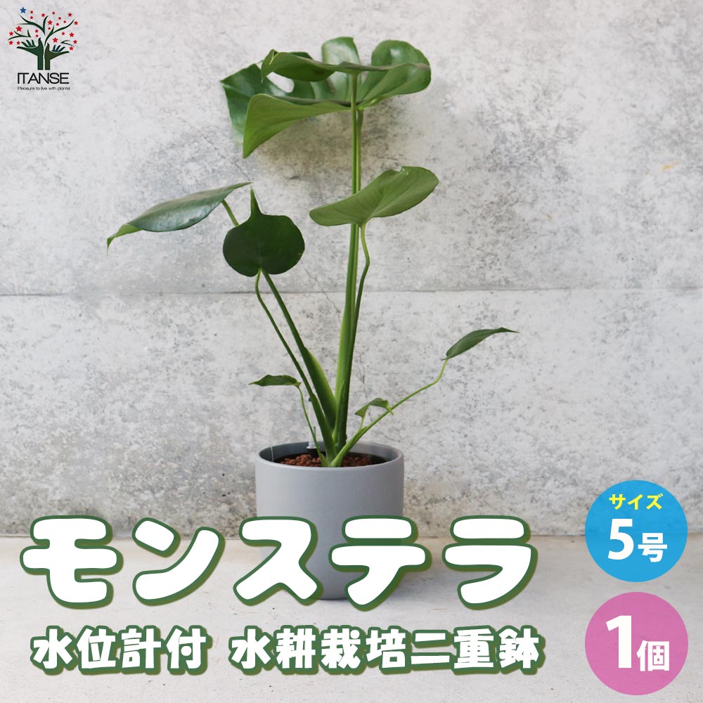 モンステラ 水位計付 水耕栽培二重鉢仕様【観葉植物 5号鉢/1個売り】