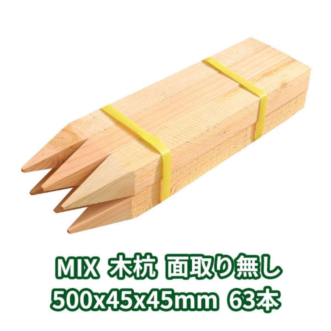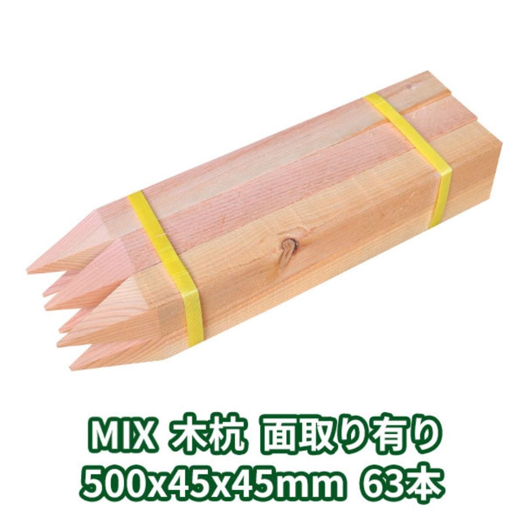 測量杭 木杭 500mm×45mm角 面取り有り 63本入り MIX 1本約 144円