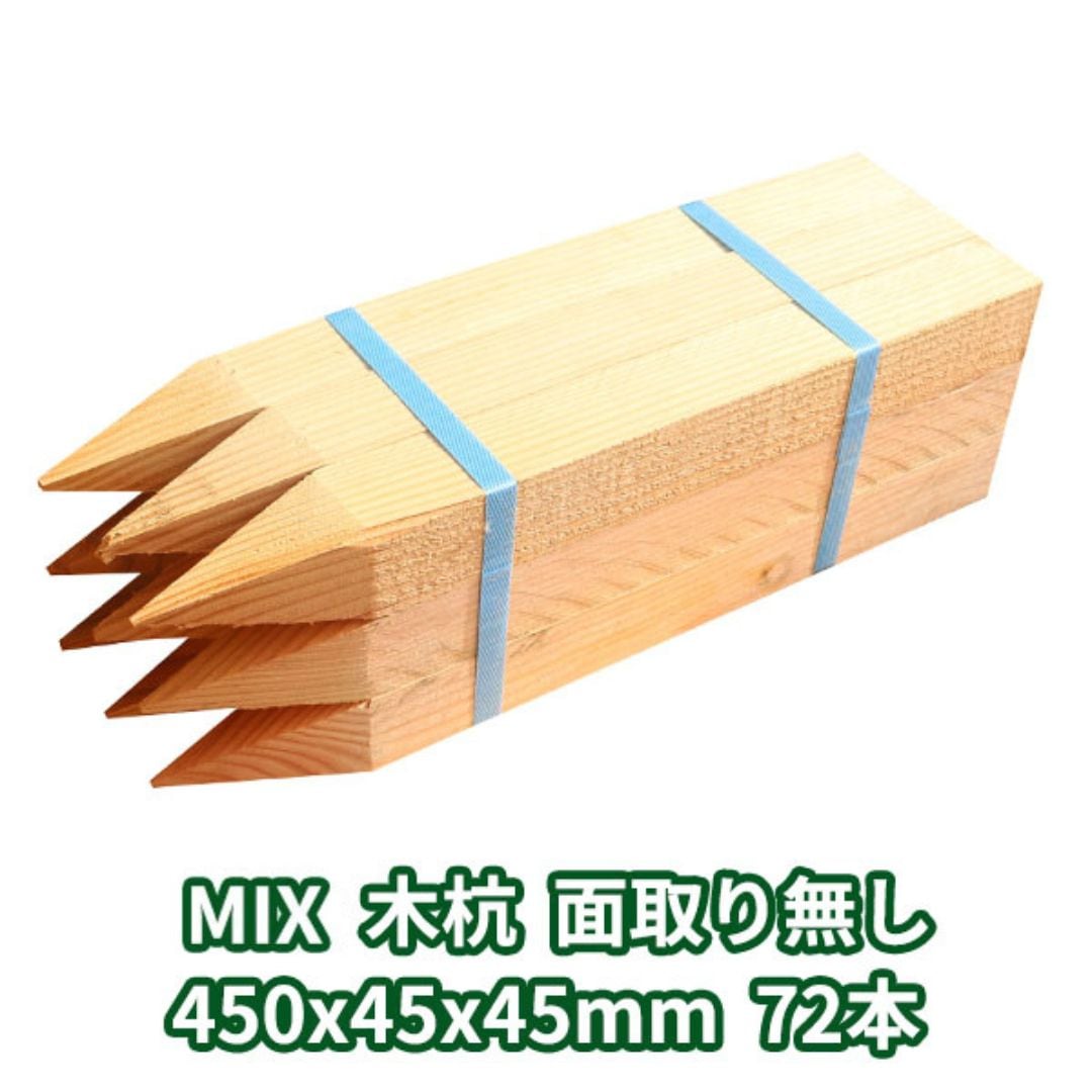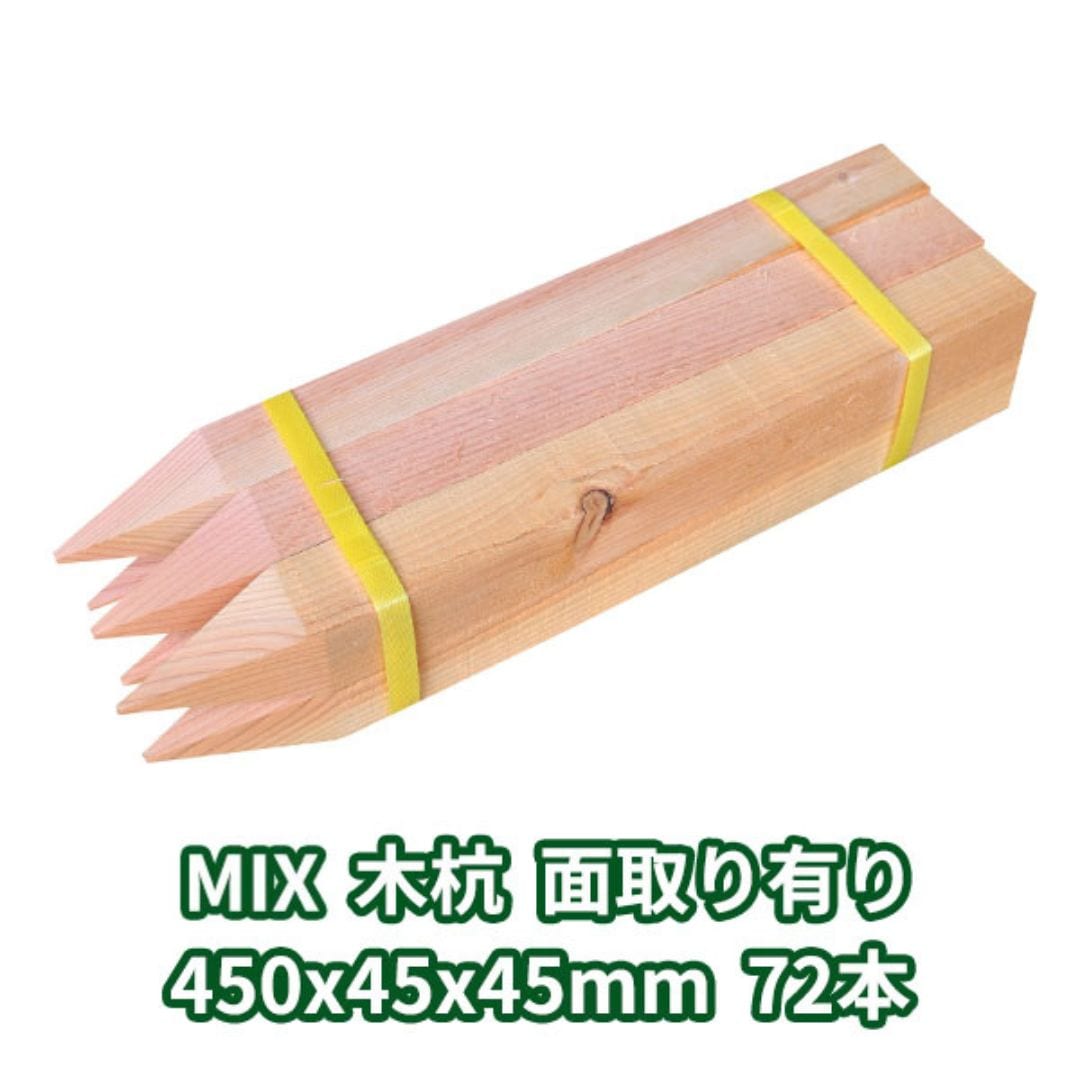 木杭 450mm×45mm角 面取り有り 72本入り MIX 1本約124円