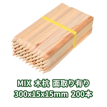 木杭 300mm×15mm角 面取り有り 200本入り MIX 1本約47円