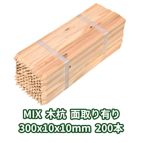 木杭 300mm×10mm角 面取り有り 200本入り MIX 1本約43円