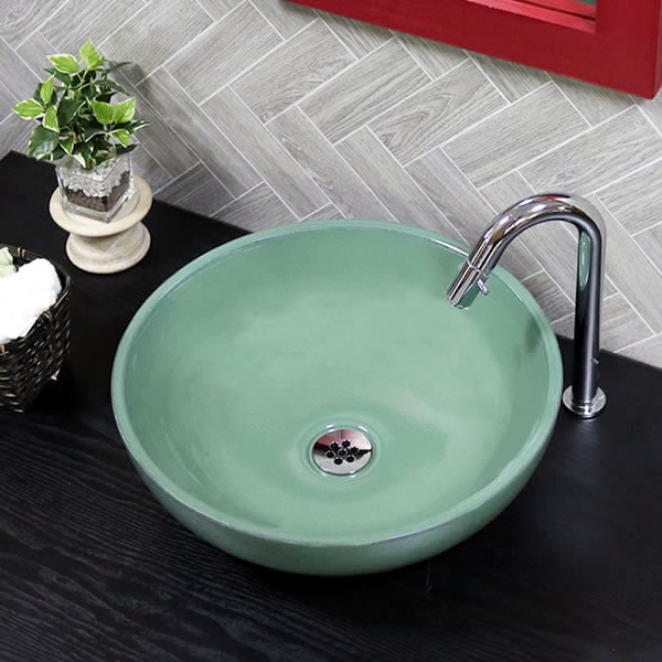 緑なまこ手洗い鉢【中型サイズ】 信楽焼き手洗器! 陶器の手水鉢 洗面ボウル [tr-3081]