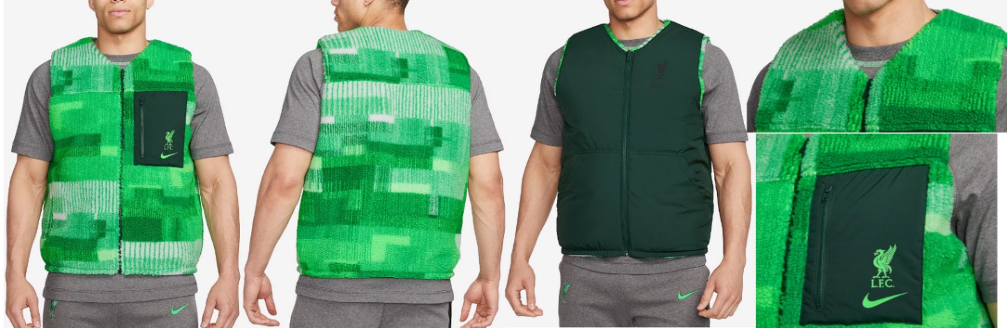 世界市場独占!23/24 リヴァプール オフィシャル\"リバーシブル\"パデッドベストフリースジャケット:グリーンスパークカラー(...
