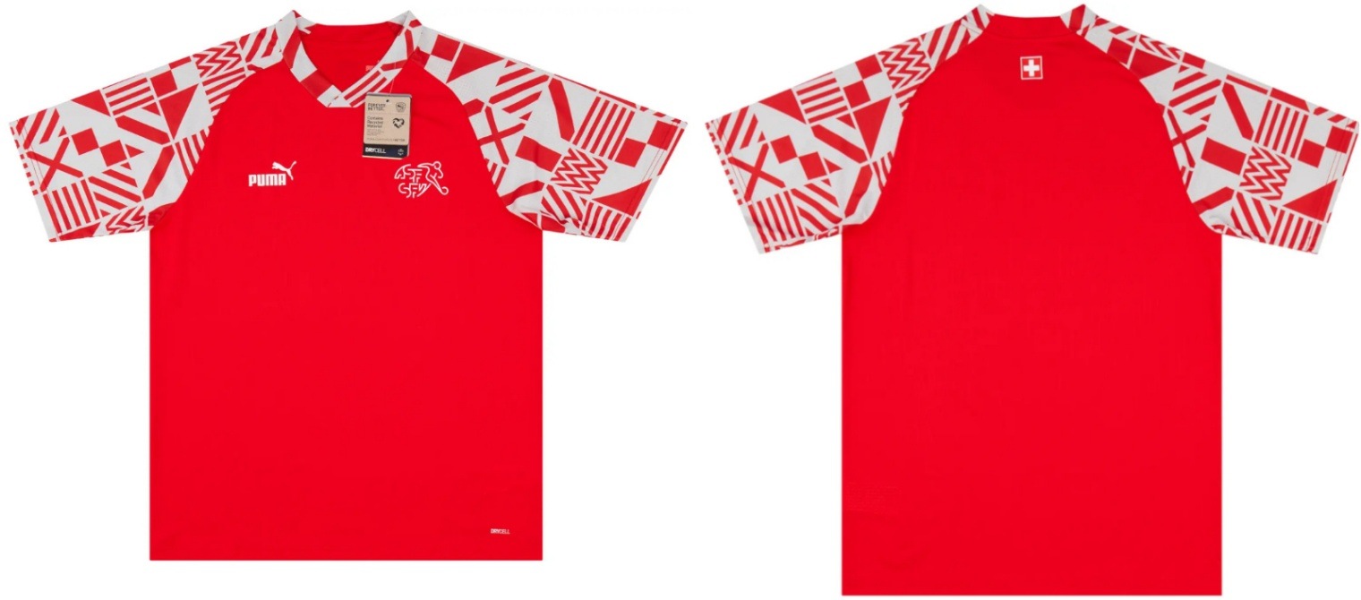 世界市場独占!2022/2023 スイス代表・オフィシャル\"プレマッチ\"ウォームアップトレーニングシャツ:ホワイトカラー(スペ...