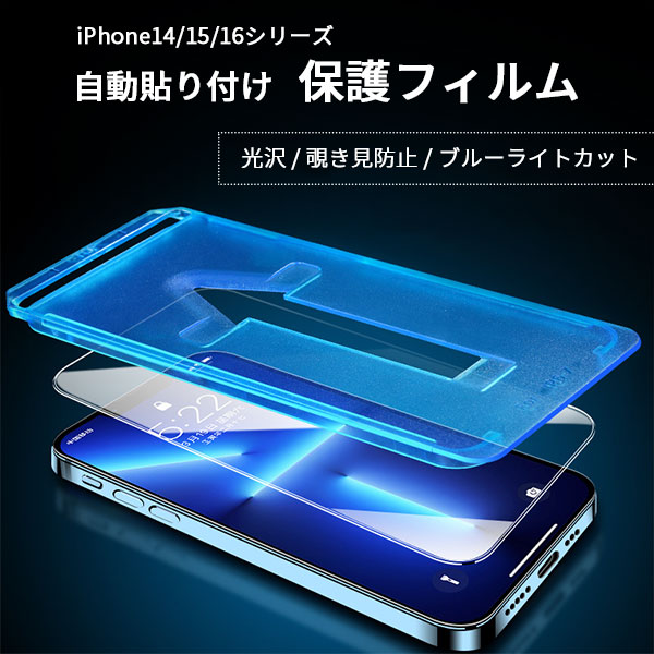 【即納】iPhone 14 15 16 保護フィルム 光沢 ブルーライトカット 覗き見防止 取り付けツール 撥油 撥水 耐衝撃 送...