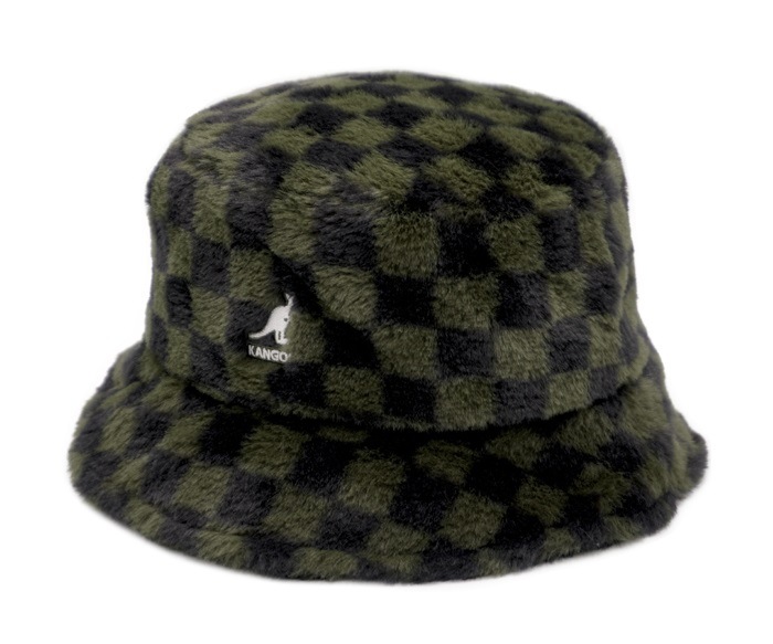 送料無料 KANGOL カンゴール ハット Faux Fur Bucket フォークス ファー バケット オリーブチェック