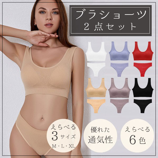 ブラ&ショーツ ブラショーツ 2点セット ノンワイヤー ブラジャー パッド付き 上下セット 下着 通気性 スポーツブラ フルカップ...