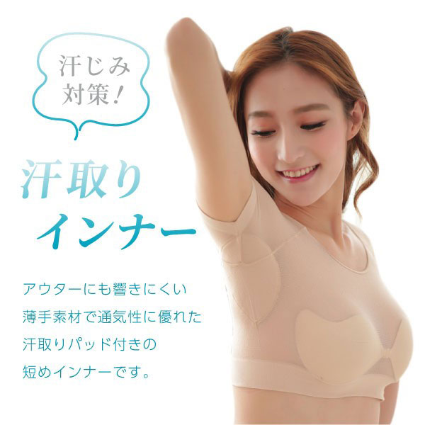 脇汗 対策 汗取り インナー 脇汗インナー 脇汗 汗取りパット付 汗取りパット 吸汗 速乾 短め 薄い 半袖 下着 レディー