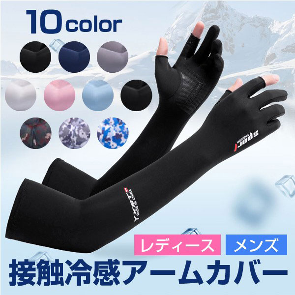 【即納】ユニセックス 男女兼用 アームカバー 接触冷感 指穴 UVカット 腕カバー 紫外線対策 日焼け防止 アウトドア 通気性 吸...
