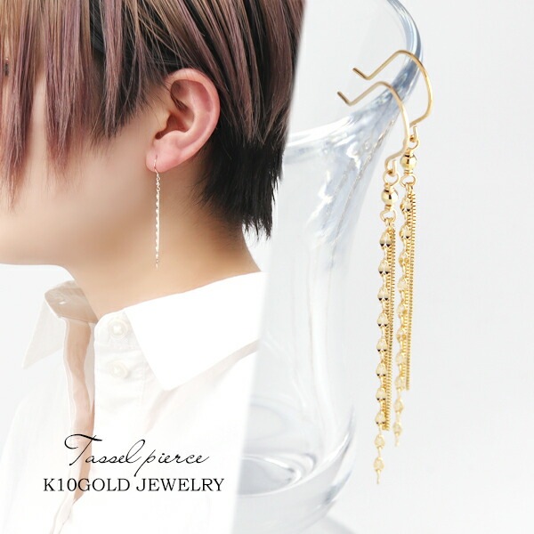 揺れる K10ゴールド タッセル チェーンピアス 2P 両耳用 10金 10k ゴールド 金 ピアス ロングピアス ベネチアンチェ...