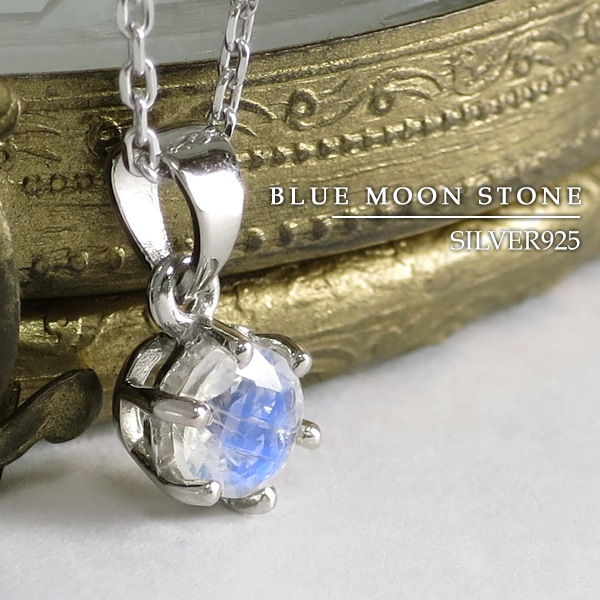 天然 ブルームーンストーン ラウンドカット 一粒ネックレス 天然石 誕生石 6月 ブルーシラー 青 ムーンストーン シルバー925...