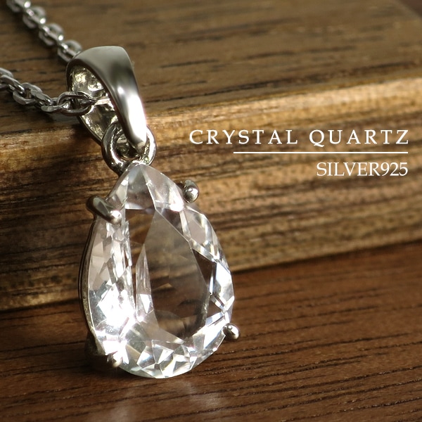 ロシア産 天然 クリスタルクォーツ ドロップカット 一粒ネックレス 天然石 クリスタル 水晶 石英 誕生石 4月 シルバー925 ...