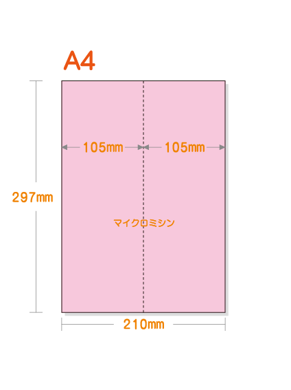 【ミシン目入りカラー用紙】 A4 タテ2分割 [ピンク]