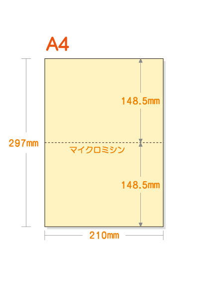 【ミシン目入りカラー用紙】 A4 タテ2分割 [クリーム]