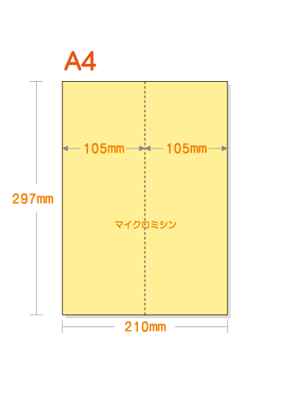 【ミシン目入りカラー用紙】 A4 タテ2分割 [イエロー]