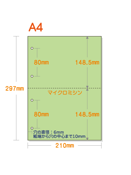 【ミシン目入りカラー用紙】 A4 2分割 [グリーン] 4穴あり