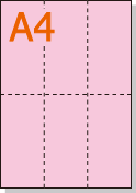 【ミシン目入りカラー用紙】 A4 タテ長6分割 [ピンク]