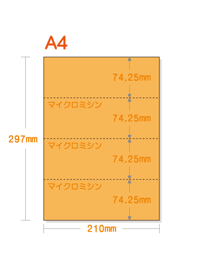 【ミシン目入りカラー用紙】 A4 ヨコ4分割 [オレンジ]