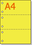 【ミシン目入りカラー用紙】 A4 3分割 [イエロー] 厚めの用紙 6穴あり