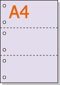 【ミシン目入りカラー用紙】 A4 3分割 [パープル] 特厚用紙 6穴あり