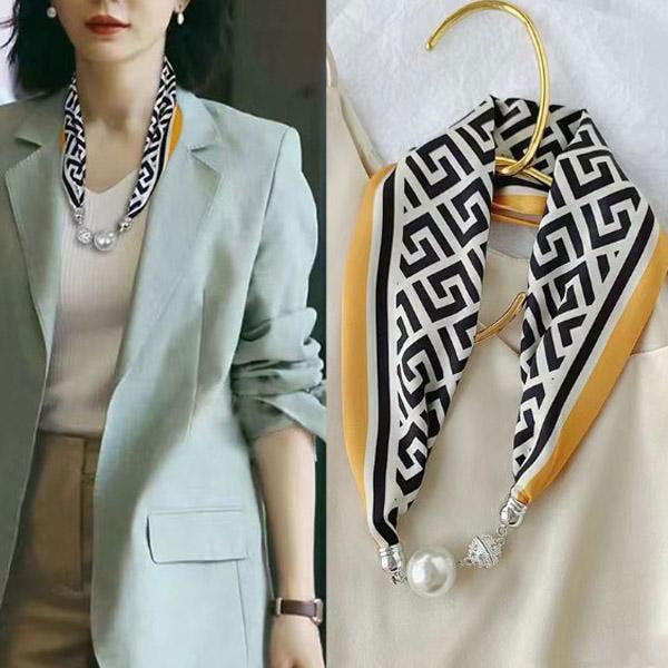 レディース 磁気バックル スカーフ ネックレス シルク風 プリント柄 巻きスカーフ アクセサリー マグネット 留め具 取り外し プ...