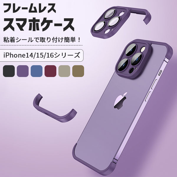 【即納】フレームレス スマホケース 粘着シール型 iPhone 14 15 16 TPU ケース レンズ 保護カバー デザイン 耐...