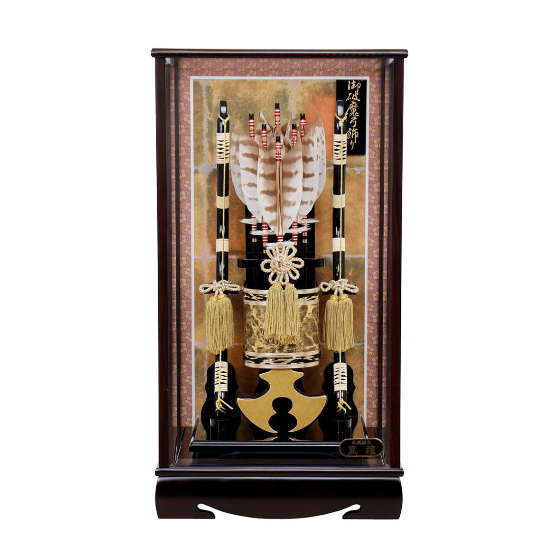 破魔弓 コンパクト 初正月 おしゃれ かわいい 破魔矢 ミニ ケース入 ケース飾り お祝い 男の子 黒檀 彩雲 15号 ガラス 1...
