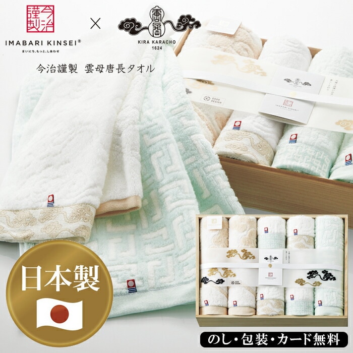 唐長文様 コンパクトバスタオル3P、ロングフェイスタオル4P(木箱入)SE5-106-9 内祝