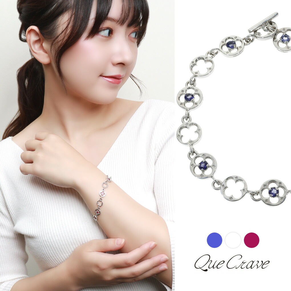 Que Crave トレーサリー フラワー ブレスレット シルバー925 アイオライト ジルコニア ロードライトガーネット シルバ...